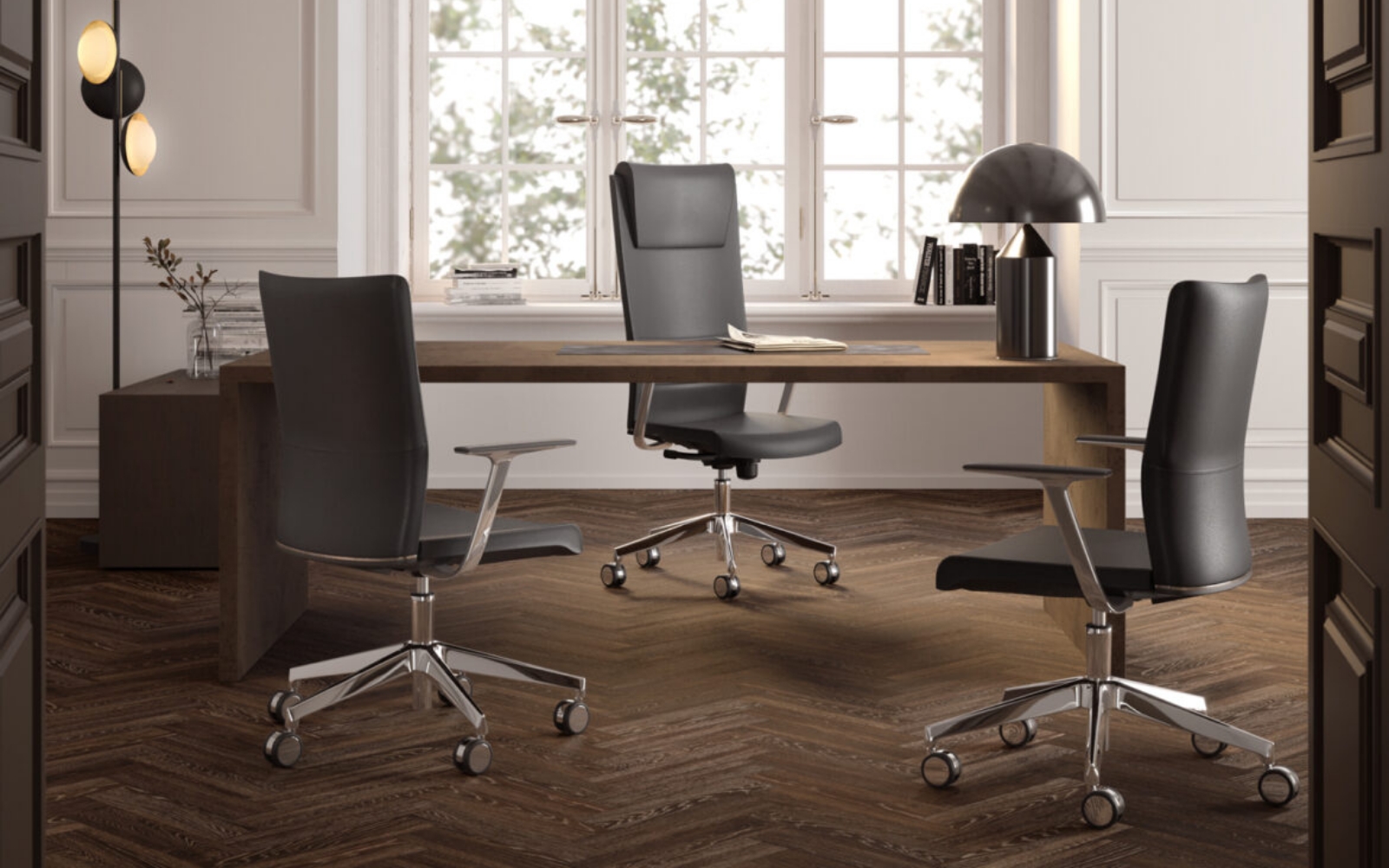 Le poltrone direzionali della linea King fanno parte della collezione Sedute direzionali di Kastel. La poltrona direzionale King è caratterizzata da sedile e schienale interamente imbottiti e rivestiti e dall’inserto in acciaio sullo schienale. Varie soluzioni di meccanismi, braccioli e basamenti. Completano la gamma versioni visitatore con telaio a slitta.