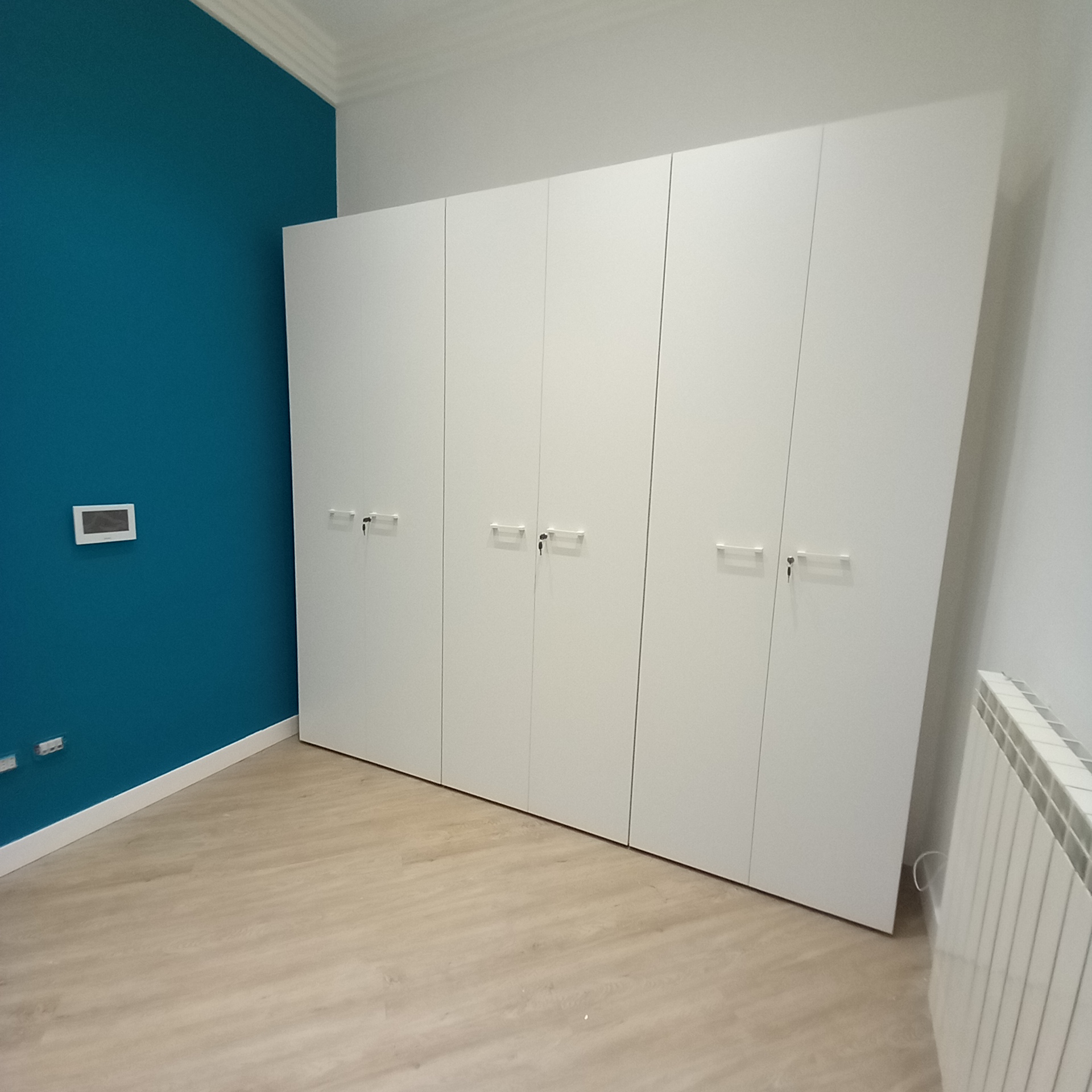 L’estetica minimale e i colori neutri, dominati dal bianco e dalle sedute in ecopelle ottanio , amplificano la sensazione di ordine e luminosità, mentre i colori delle pareti distribuite nei diversi ambienti introducono un tocco naturale.