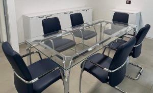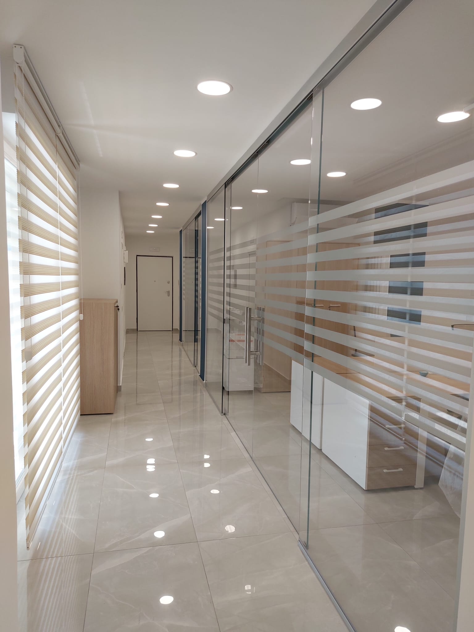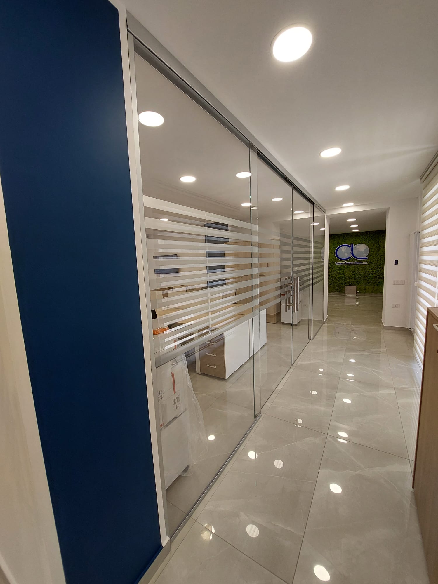 L’ufficio è stato suddiviso attraverso pareti vetrate, una soluzione che garantisce luminosità naturale, trasparenza e continuità visiva, favorendo al tempo stesso un ambiente di lavoro dinamico e collaborativo.